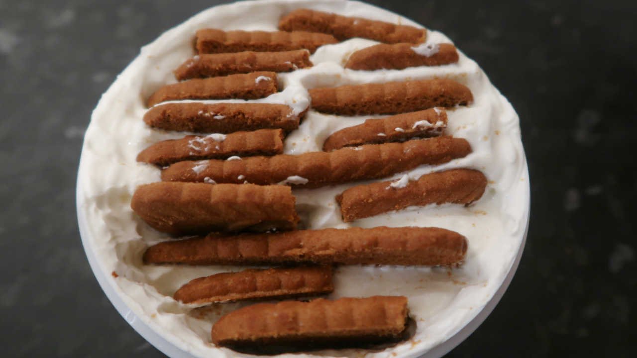 2. Place biscuits into the yogurt, filling it with as many as you’d like.
