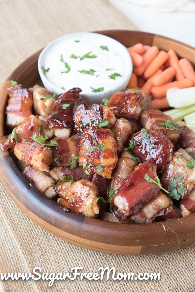 These sugar-free sweet & spicy bacon chicken bites have quickly become one of my most requested chicken recipes, especially when friends are coming over or someone needs an easy low-carb meal that doubles as a delicious appetizer.