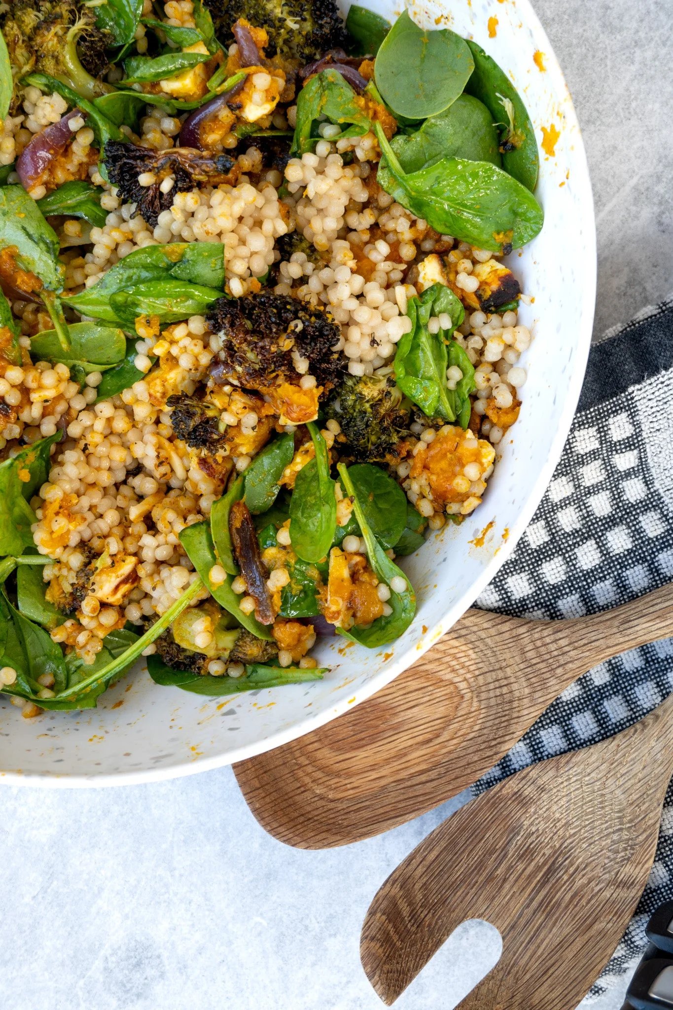 Roasted Pumpkin & Broccoli Salad with Pearl Cous Cous and Haloumi