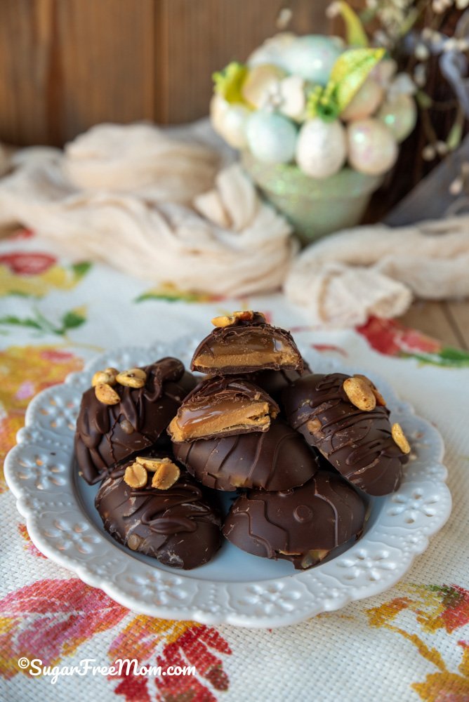 Sugar Free Low Carb Keto Peanut Butter Caramel Eggs
