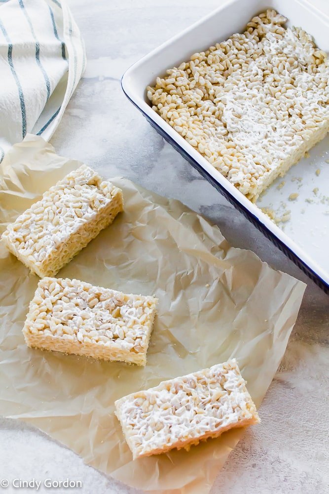 - Vegan marshmallows (gelatin-free): Many marshmallows are made with gelatin, but there are plenty without! This is the glue that holds the whole vegan rice crispy treat.